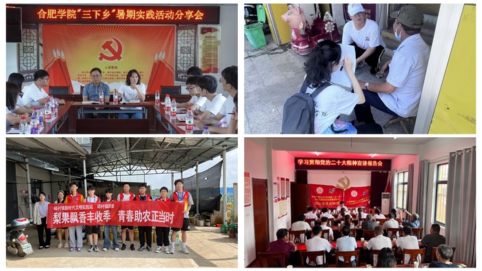 校学生会“红色‘中’流砥柱,振兴‘分’秒必争”实践队以芜湖市繁昌区中分村为调研目标,采用“线上+线下”的方式进行实地调研,为推动当地的经济发展建言献策。经济与管理学院团队对滁州市琅琊区半塔镇龙池社区居民开展财商课程培训,普及货币的概念和发展历史。人工智能与大数据学院团队积极参与宣城广德市邱村镇的蜜梨采摘、包装等工作,缓解当地人力资源紧张的问题。马克思主义学院赴安庆市太湖县天华镇西冲村开展党的二十大精神宣讲,用形象生动的语言、真实的案例描述家乡的变化及未来展望。