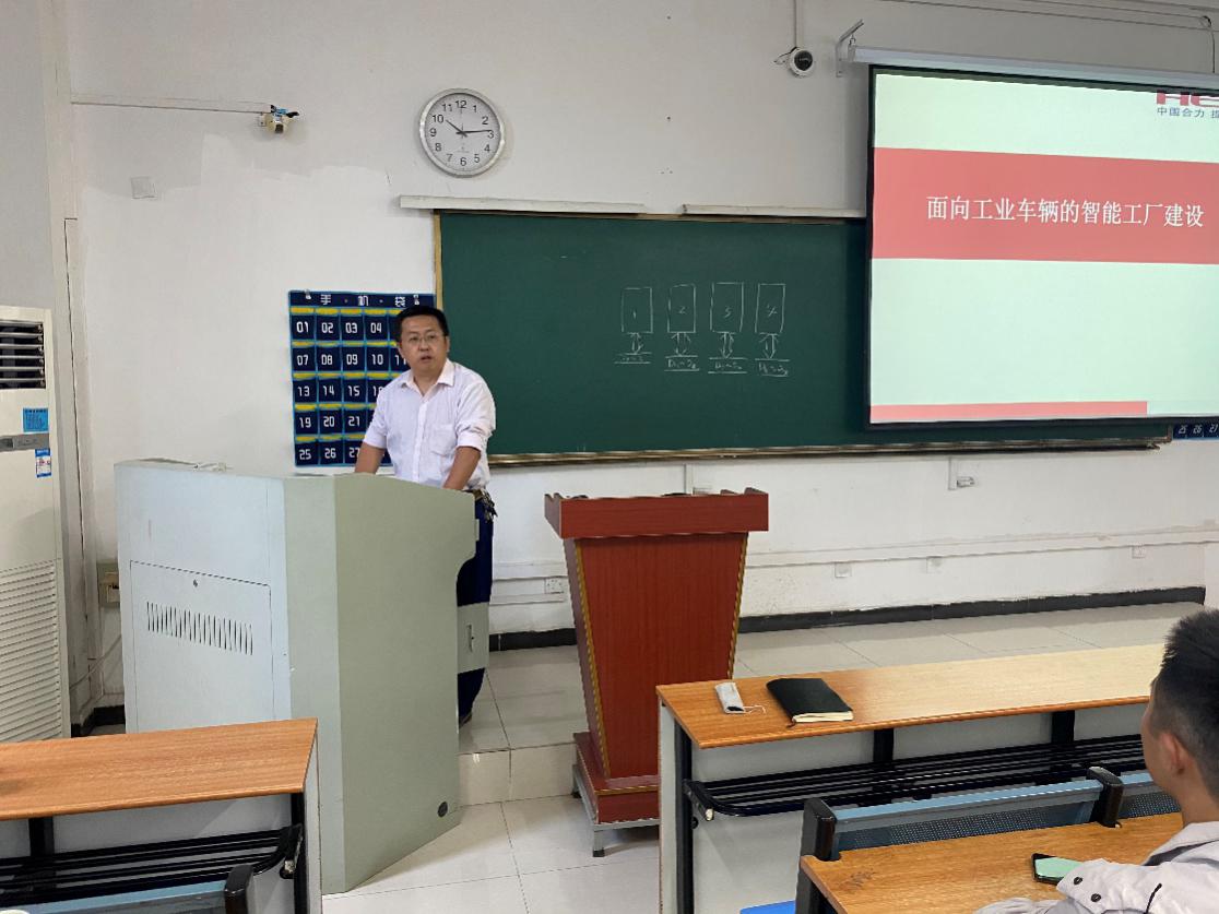 HRG合肥研究院李传国老师针对智能制造和车辆工程两个专业学生的素质培养,结合企业实际工作应用场景及智慧工厂人才需求,进行了智能制造技术应用及发展等知识的拓展报告,分享了关于“智能制造虚拟仿真技术的探索及应用”的主题报告。