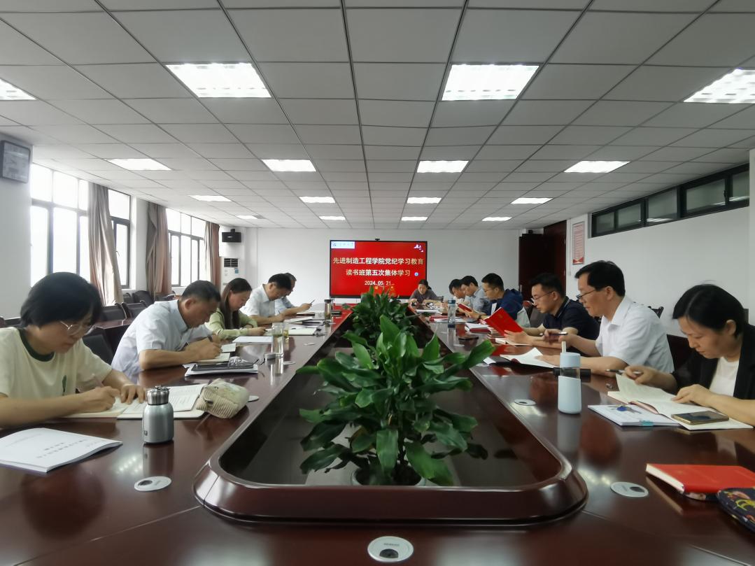 2024年5月21日上午,先进制造工程学院党委在学院40#305会议室开展党纪学习教育读书班第五次集体学习,全体班子成员、科级干部及学院各支部书记参加读书班。