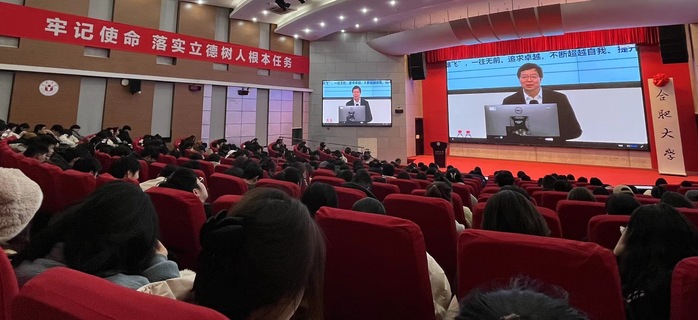 邱勇回顾了人类历史上三次现代化浪潮和中国式现代化道路的探索历程,他表示,党的二十大提出并深入阐述了中国式现代化理论体系,进一步明确到2035年基本实现社会主义现代化的总体目标和到本世纪中叶全面建成社会主义现代化强国的“两阶段”战略安排。邱勇鼓励学生们洞察时代趋势,明确前进方向;增强自身能力,勇于承担重任,为全面推进中国式现代化、实现中华民族的伟大复兴贡献青春力量。