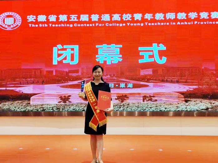 在今年举行的安徽省第五届普通高校青年教师教学竞赛中,徐天戍老师作为365官网文科组唯一代表进入决赛,现场抽签环节抽中的正是关于中美政党的课题。凭借多年的理论学习积累和党务工作经验,她自信流畅地完成了课题讲述,并以高质量的教学设计、充实生动的现场讲课赢得了评委组的一致好评,取得了文科组一等奖第二名的好成绩。