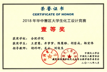 在此基础上,本专业在培养学生化工创新和实践能力上取得了诸多成效,参加全国化工设计大赛等各类大学生学科、技能竞赛,获得省级以上奖励150余项。本专业建立了《化工热力学》、《化工原理》线上线下以及化工过程模拟虚拟仿真6门校级金课。10个实验微视频上传至“合肥学院在线学习平台”,学生访问量达2万余次。出版了国家“十三五”规划教材3本,校本教材10本。本专业教师获国家级教学成果一等奖2项(2014年、2018年)。2018年通过国家工程教育认证专业,有效期限为2018年1月-2023年12月。2019年获批国家一流本科专业建设点。