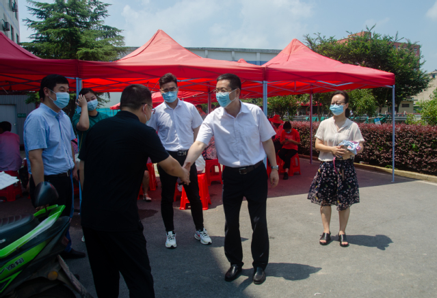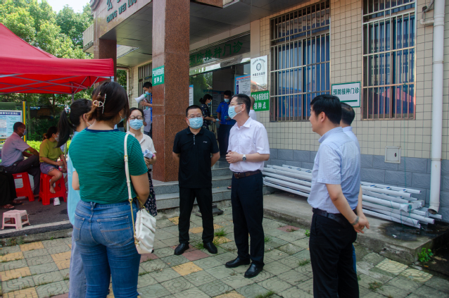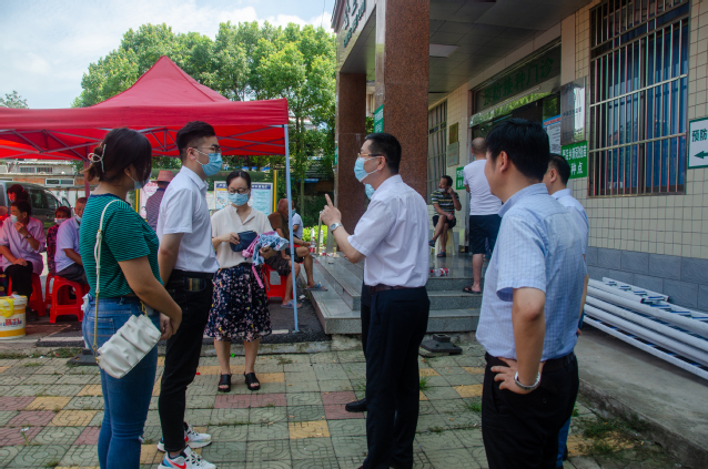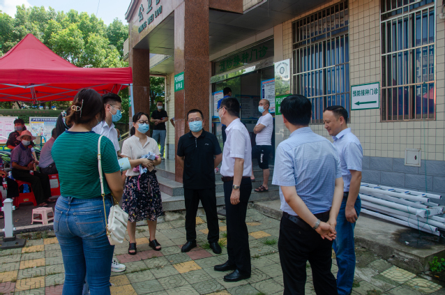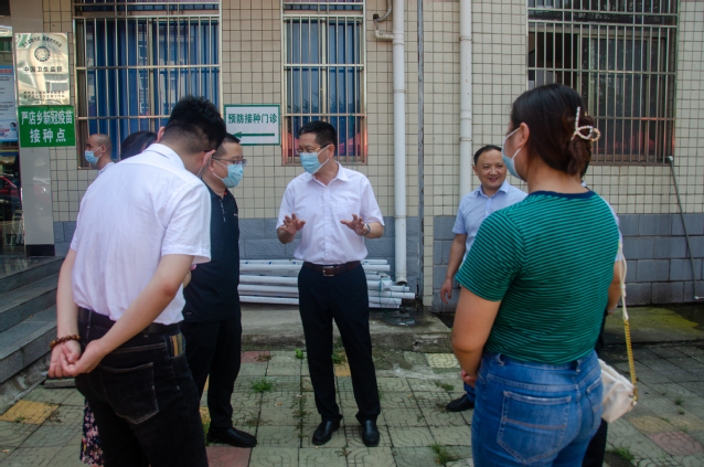 活动期间,刘建中一行在严店乡政府党委书记周洲、团委书记朱云青以及实践团队指导老师杨林的陪同下,对正在协助卫生院进行疫苗接种的队员们走访慰问。刘建中一行先是听取了实践团队今天的活动安排及活动成效,并对当地政府的支持表示感谢,刘建中表示,当地政府的支持是我们实践团队能正常开展活动的保障,作为社会实践团队,要将我们的活动做实,为当地居民贡献自己的一份力量,这才是这次实践活动的意义所在。接着,刘建中一行询问了实践团队前三天的活动开展情况,了解到该团队已经在敬老院、少年宫等地开展了疫情防控、聊天谈心、党史教育、支教等活动,对多样化的活动形式表示了肯定,刘建中指出,社会实践活动形式多元化可以让学生从多角度了解国情,看到乡村振兴的成果,同时可以提升学生整合知识能力,并将知识应用于实践,从多方面锻炼学生的实践能力。在与当地党委书记周洲的交流中,刘建中就大学生的暑期社会实践活动表示,我们学校要多带领当代大学生深入基层一线,了解国情,让生活在“蜜糖罐子”里的他们体验一下“苦日子”,用脚步丈量世界,教育引导他们更好地为社会作贡献。最后,刘建中对团队指导老师及学生负责人做出了要求,他强调,实践团队要重视队员的安全问题,做到“提前预防”“及时报告”“及时治疗”,禁止学生晚上出行,将学生安全置于首位;要引导队员们将实践活动做到实处,在完成当地政府部门布置的任务的同时,也要开展具有特色的活动;要将自身所学的知识应用于社会实践,在社会实践中把握自己、提升自己。