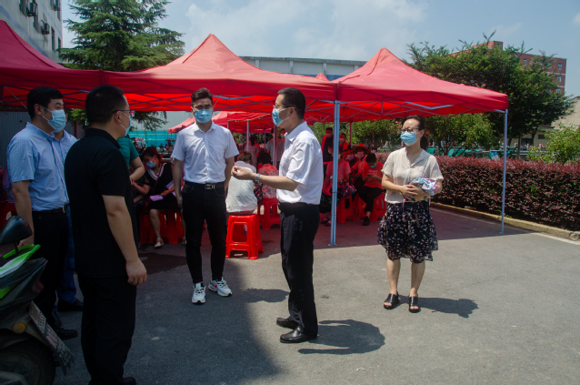 为近一步宣传疫情防控知识,帮助当地乡民做好疫苗接种,7月20日,我院暑期三下乡社会实践团队成员主动前往严店乡卫生院,开展协助卫生院进行疫苗接种工作,发放防疫宣传册等志愿服务活动。活动期间,合肥学院校党委副书记刘建中,校党委委员、学工部部长朱涛,校团委副书记(主持工作)王玉,校团委副书记李妍妍来我院社会实践团队走访慰问,严店乡政府党委书记周洲、团委书记朱云青陪同。